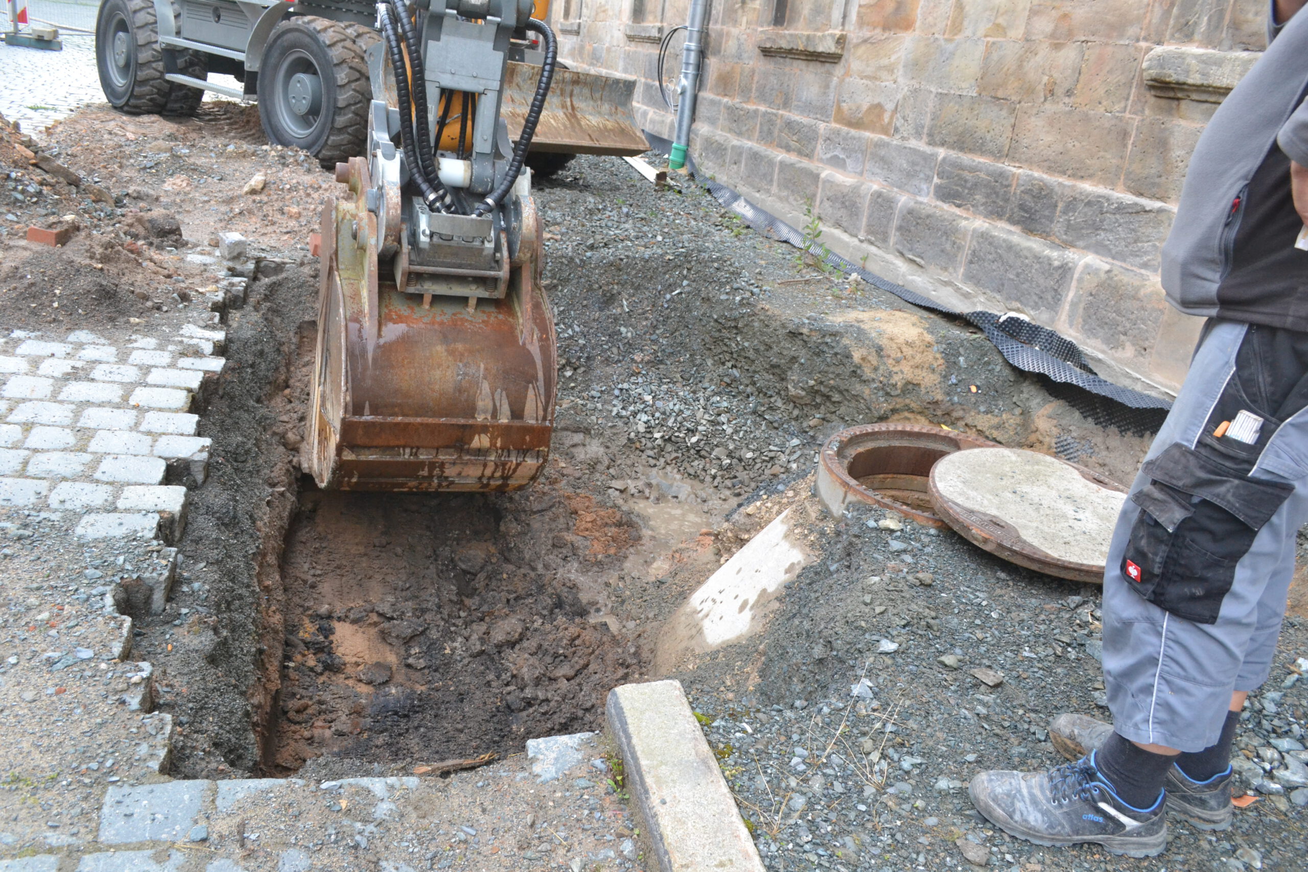 Auch schmale Probeschnitte, die nach Absprache bis auf den natürlichen Boden abgetieft werden, können bauvorgreifend Informationen über den Baugrund bringen. So können kurzfristig ausgesprochene Beauflagungen durch die Baubehörden im Vorfeld bereits abgewendet werden.